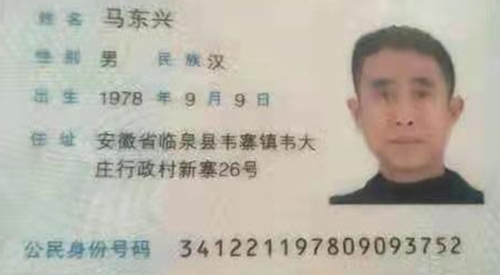 我叫马东兴,家住安徽省临泉县韦寨镇韦大行政村新寨自然村26号;身份证号码:341221197809093752;电话:15995585669。
