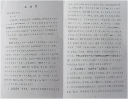 我们是黑龙江省佳木斯市的三名农民,在遭到佳木斯市住房公积金县级主任吕晓聪及合伙人李宏霞的辱骂催贷之下,现在万般无奈之下向媒体发出了这封求助信。