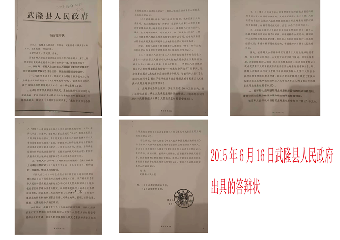 2015年6月16日,武隆县政府行政答辩状上明确认定:1、1998年,答辩人依法向第三人颁发的《重庆市武隆县农用土地承包经营权证》系合法,依法应当受到法律保护;2、答辩人于2010年12月向第三人颁发的《重庆市农用土地承包经营权证》(CQ292401060084)系合法的,有效的,依法不应当撤销。