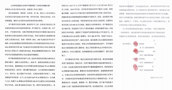 以上所反映的情况绝对属实,如不属实,举报人愿意承担一切法律责任。我们强烈呼吁青岛报业集团对李宁勤违法违纪问题进行认真调查处理,请求纪检监察部门追究她的法律责任。