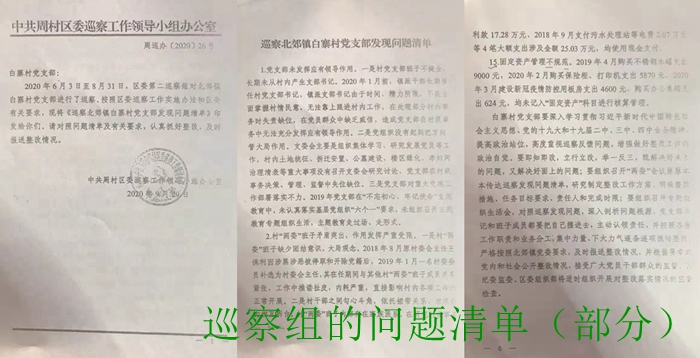 村民们反映:周村区北郊镇政府,为了加强各村党支部建设和村集体的管理工作,采取了政府人员包片包村对口管理的措施,北郊镇干部薛川被安排到白寨村兼任党支部书记。其在任职期间,对村里过去发生的问题,采取新官不理旧账的态度不闻不问,对现有的工作不讲原则随意处置,造成村里各项工作混乱不堪。2020年6月3日至8月31日,周村区区委第二巡察组对北郊镇白寨村党支部进行了巡查,在巡查中发现了诸多问题并印发了问题清单,责成白寨村党支部进行立即整改。但时至今日很多问题依然没有整改、不了了之。