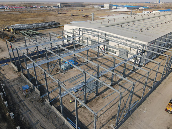 图为:三一零碳智造产业园项目叶片厂房主体结构已完成施工