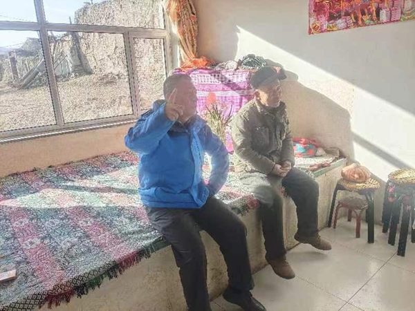 左一为曾明副县长在农户家里作工作调研