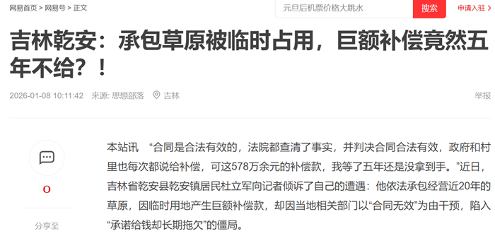 吉林乾安:承包草原被临时占用,巨额补偿竟然五年不给?!