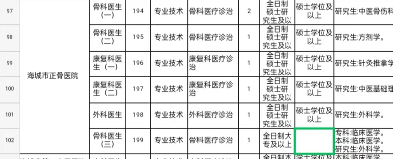 2021年就这样过去了,在2022年的“海城市事业单位公开招聘岗位信息”表中,正骨医院同样地保留着专科起点的“骨科医疗诊治”岗位,这回,苏长庚考上了。