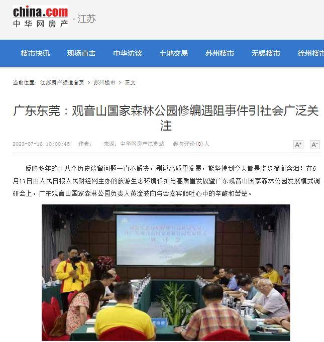 2023年8月8日,广东观音山国家森林公园向国务院办公厅致函反映阻碍正常发展的19条线索