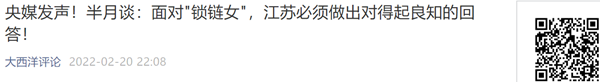 这是《半月谈》第二次就 “锁链女”事件阐明观点。之前,其转发《人民日报》旗下新媒体“侠客岛”文章并摘取评论说: