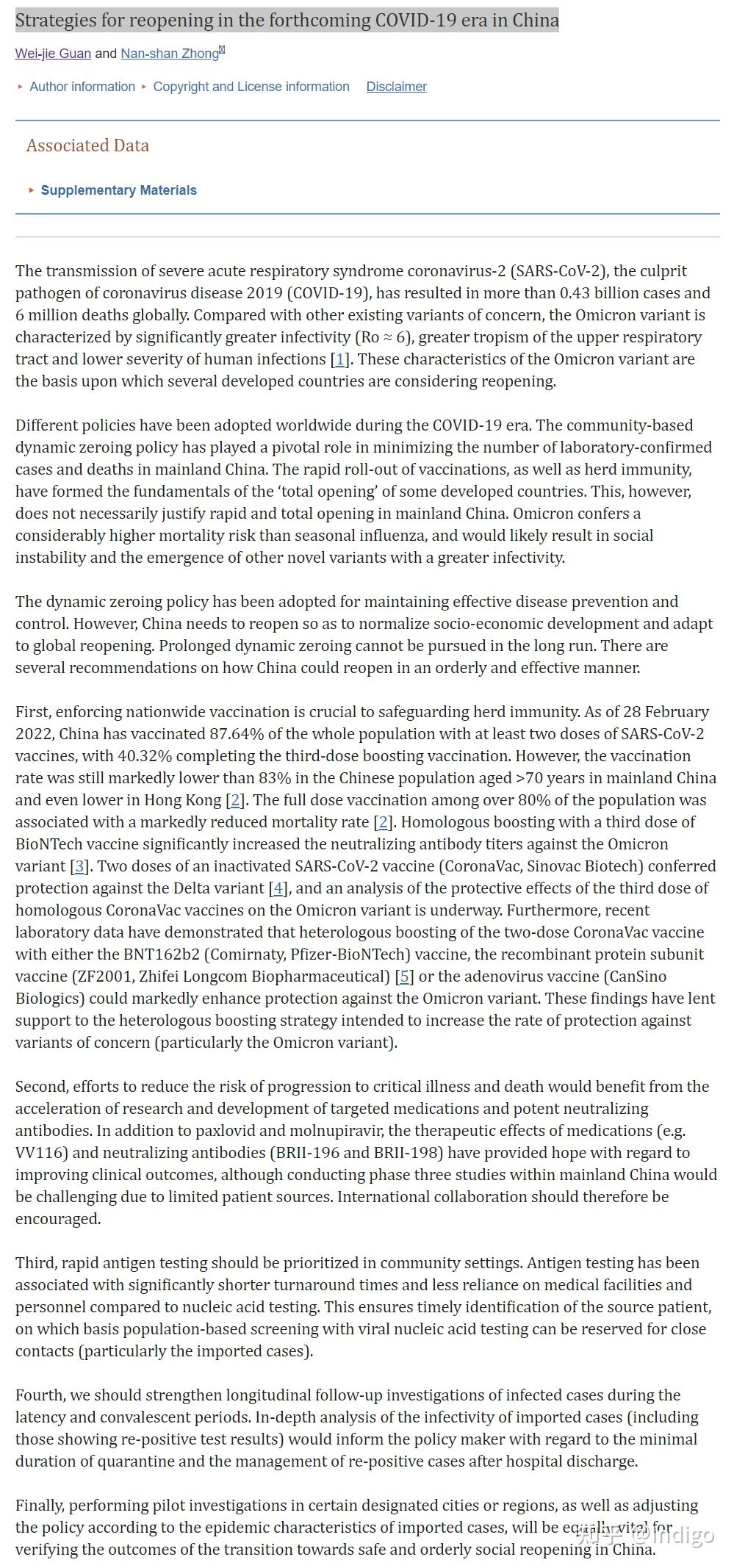 最后,在某些指定城市或地区进行试点调查,并根据输入性病例的流行特点调整政策,这对于核实中国如何走向安全有序的社会重新开放过渡的成果都非常重要。