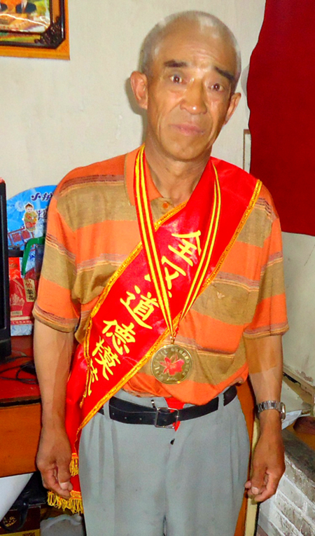 图为:李元吉荣获全国道德模范提名奖,在人民大会堂合影
