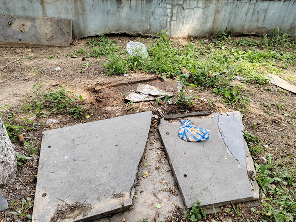 图为:四平市殡仪馆殡仪服务部院内垃圾遍布下树林下