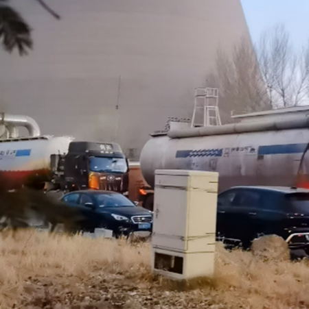 11月23日凌晨7点前后,记者根据线索行至吉林大路北侧的某加油站,可以看到加油站西侧墙外有多辆罐装重货在排队等待进入热电厂,据路过的行人称,这是等待进入热电厂拉煤灰的重型罐车,这些大车长16米左右,高四米多,车辆行走到身边感觉路面都颤动得吓人。
