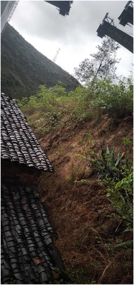 由于我家房屋左右都是山体自然形成的山体大沟,2017年10月份施工方修建搅拌站时把右面的沟用弃土填满方便修建搅拌站。2017年初,由于施工方的需要在我房屋左面的山体大沟处修建了弃土场,弃土堆满了数百万方,把山体形成的大沟全部堵满。现在,弃土堆满了离我家只有十几米。2018年4月份,施工方为了给弃土场修建抗滑桩,在我房屋门前10米处选择了人工挖坑。施工方选择了爆破,多次使用爆破作业,对我房屋造成了巨大的影响,致地基下沉,楼顶裂缝,墙体又部分裂缝。