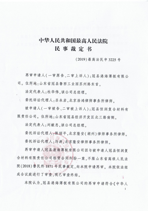 2015年6月10日,付建军与其律师事先打印好了《生产设备和办公设施租赁合同》。付建军以冠县恒润复合材料有限公司(以下简称恒润公司)的名义与港海公司签定了为期5年的租赁合同,该合同约定自租赁港海公司之日起前6个月不支付租金,6个月以后所得利润的90%用于偿还港海公司所欠北京志和伟业公司借款,剩余10%作为支付港海公司租金,付建军负责财务管理,朱英民负责生产经营。