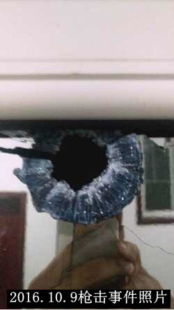 子弹穿过外面双层玻璃后,嵌在室内第二个双层玻璃中