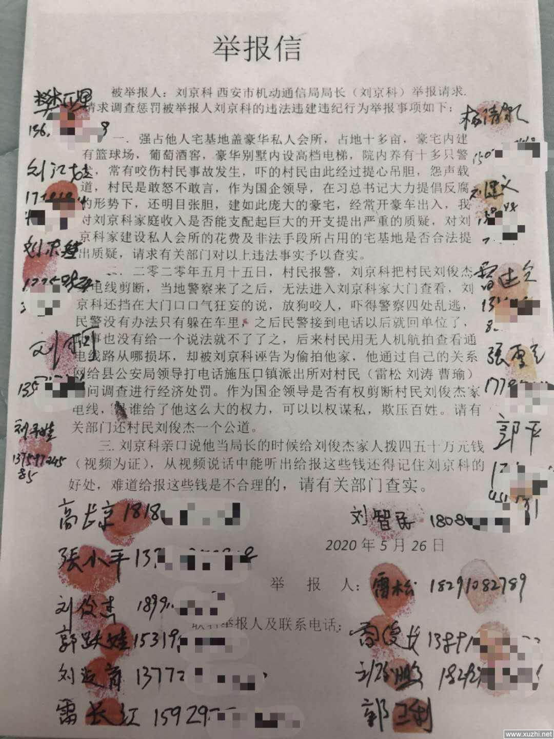 因陕西电信机动通信局局长刘京科非法侵占我村集体土地违反“八项规定”构成犯罪,刘京科还对知情揭发其犯罪事实的村民实施打击报复并与黑恶势力相互勾结进行寻衅滋事,利用权力进行权钱交易,获取钱财等违法犯罪行为,特向中央和陕西省纪律、监察部门举报,敬请依法查处:
