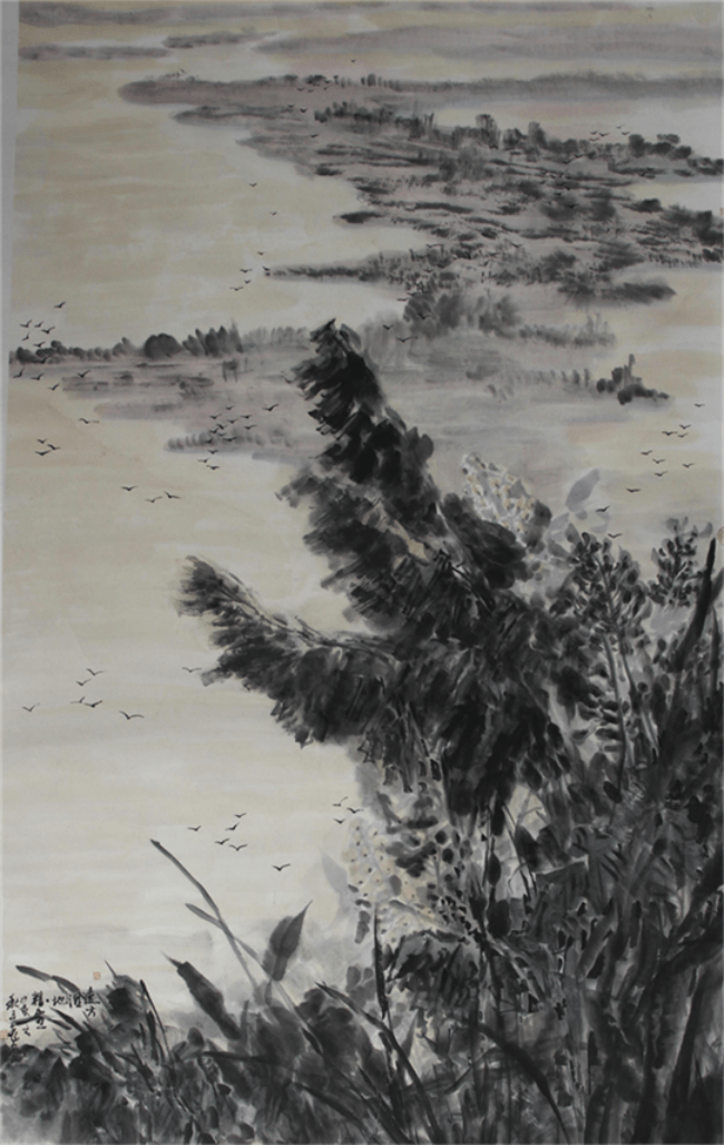 由于他的画意出自独特的视角和语言,所以其作品没有似曾相识的流行模式套路及故作高深的“古人味”、肤浅的“写生味”,品赏他的“残荷系列”,“乡野系列”,如同读清新隽永的散文,讲有趣的故事,像品淡淡的香茗,听悠悠的雅乐,似乎毫不刻意,信手拈来,实则隽永绵长,耐人回味。