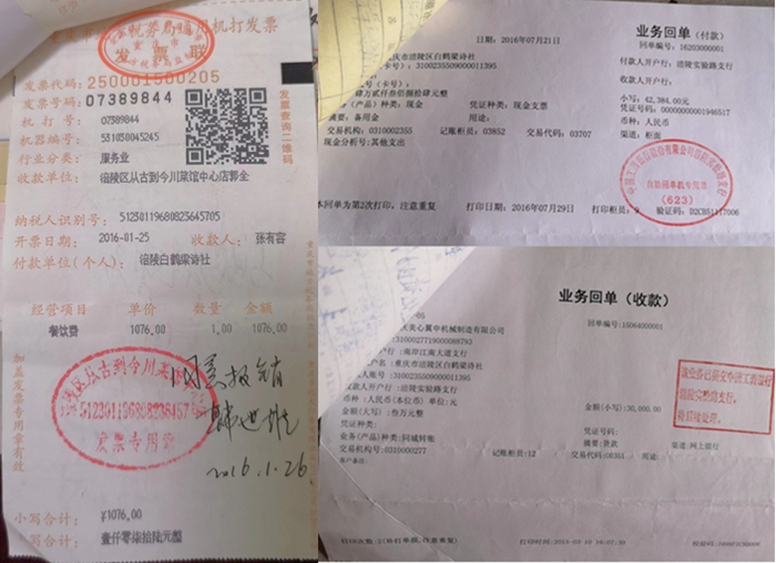 另外,会员张某、李某(化名)反映:“韩世雄任社长期间,为了将文旅委拨的扶持资金,以及一些企事业单位或组织的赞助资金占为己有,通过印刷厂印刷"白鹤梁诗词"刊物这一环节上做文章,私自将负责财务工作的出纳徐某,换成未经理事会开会讨论通过决议的孙某,徐某离职并未召开理事会,并未对财务作出任何交接或者给我们广大会员通报。韩世雄还长期勾结印刷厂工作人员配合诗社财务工作人员,伪造开销名目数据做阴阳记账凭证和费用报销单长达数年,阴阳记账凭证上数据显示,我们诗社2013年的“白鹤梁诗词”诗刊印刷费为16230元,而2015年的“白鹤梁诗词”诗刊印刷费剧增为42384元, 2015年的印刷刊印费支出突增了26154元? 是什么原因?对此,曾有老会员李某(化名)公开质问和批评过韩世雄的所作所为,但他至今未召开任何理事会或会员大会向广大会员解释原因,也从未解释他为何始终要将顾问这顶空帽儿给印刷“白鹤梁诗词”刊物的印刷厂厂长戴起,甚至更未解释他为何花诗社集体的钱高价宴请印刷厂的某些人吃喝,而且从他任诗社社长以来,从未公开公示财务明细,接受广大会员的财务监督,只是偶尔安排何某装模作样的念一下账,然后让他的亲信郭某拍几张照片拿去印在“白鹤梁诗词"刊物上,应付拨款扶持我们诗社的主管单位,这完全违反了社团组织财务管理制度,也违背了诗社当初办社的宗旨。”