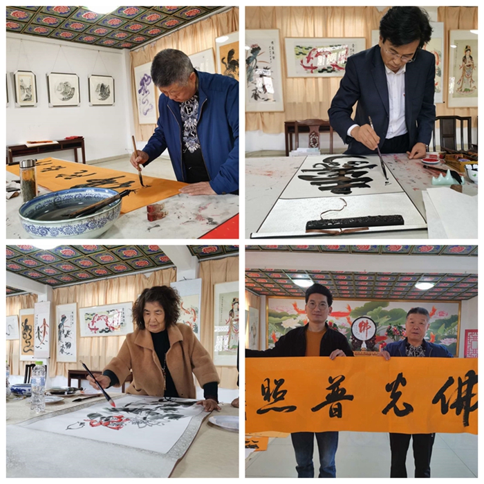 笔会邀请潍坊市女书画家协会主席刘俊梅,潍坊市青少年书画协会主席赵伟东,山东省书画学会第四届、第五届理事李虎强,高新区美协副主席王洪军出席。山川禅寺书画院负责人李涛主持活动。