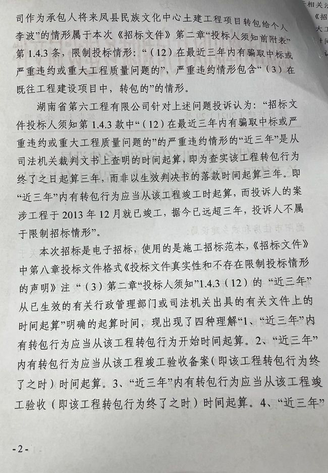 突然,2021年3月31日,业主方德阳发展控股集团有限公司(德阳发展)说,已报经旌阳区住建局裁定,现通知:经核实,你公司(湖南六建)在本项目存在招标文件投标人须知第1.4.3(12)在最近三年内有骗取中标或严重违约或重大工程质量问题的情形,所以取消你公司本项目第一候标人资格。