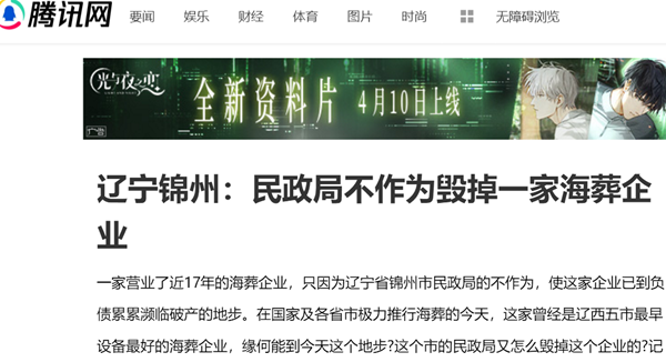 一家营业了近17年的海葬企业,只因为辽宁省锦州市民政局的不作为,使这家企业已到负债累累濒临破产的地步。在国家及各省市极力推行海葬的今天,这家曾经是辽西五市最早设备最好的海葬企业,缘何能到今天这个地步?这个市的民政局又怎么毁掉这个企业的?记者通过调查采访,现将疑问一一摊开。