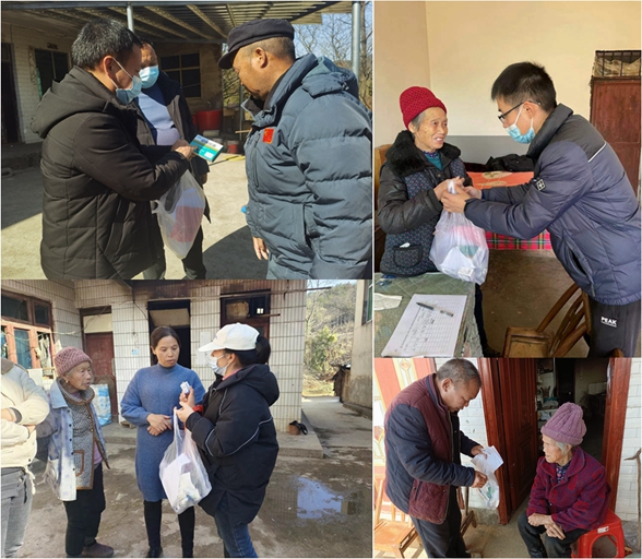 当前,群众防疫需求增加,各类药品、口罩、抗原检测试剂等供求压力加大。乡、村两级干部全员出动,向购买医药物资不便且又有实际需求的低保户、特困户、生活困难的残疾人、空巢独居老人、孤困儿童等特殊群众上门赠送“防疫健康包”,对“防疫健康包”的使用方法和注意事项进行耐心讲解,叮嘱群众酒精类药物要远离火源和电源,并且对疫苗加强针接种等问题做了健康提示,在确保重点群众的健康之外也为他们送去一份关怀、增添一份力量,获得了群众的一致好评。