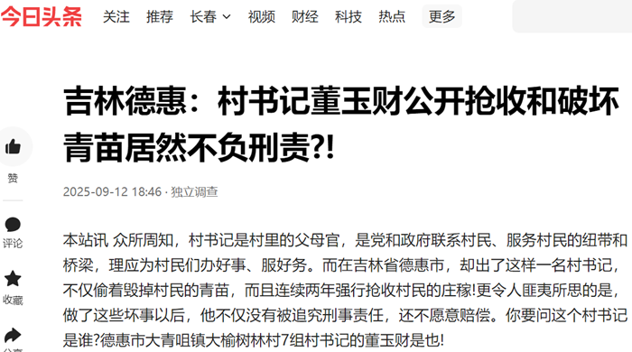 吉林德惠:村书记董玉财公开抢收和破坏青苗居然不负刑责?!
